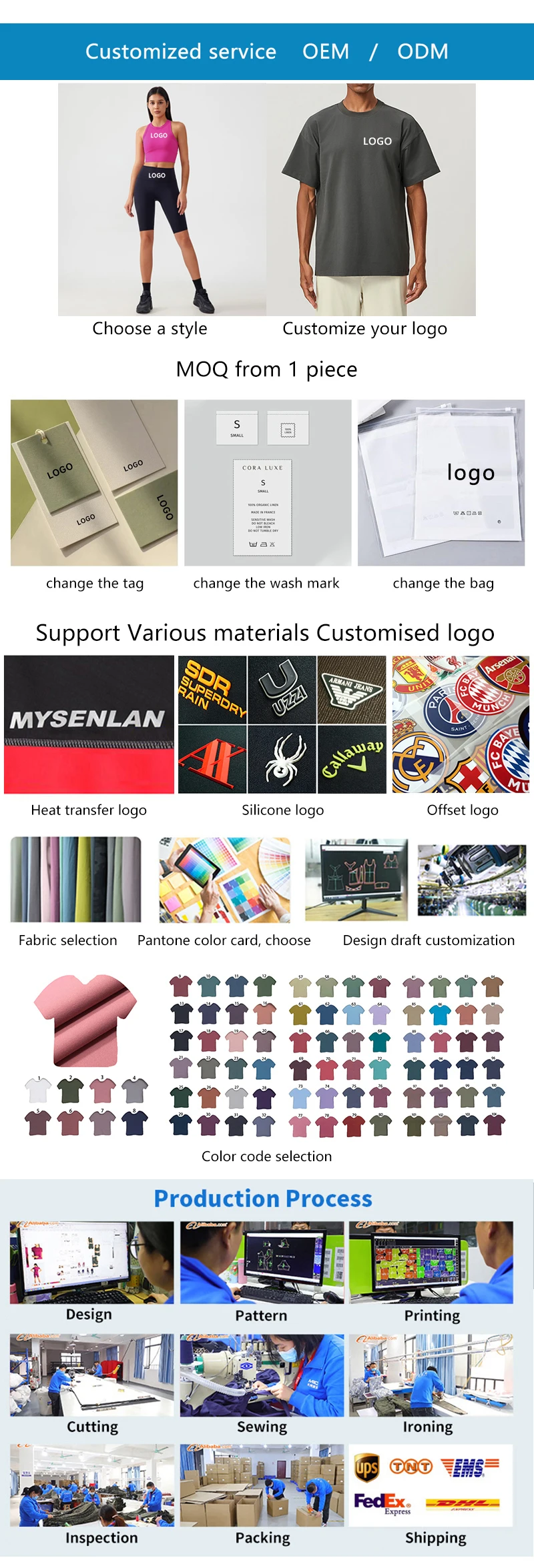 Q:Why choose us? A: Our factory has 10 years experience and specialises in men's sportswear fitness clothing . We cooperate with fabric suppliers such as Lycra Company in the United States, Coats Line in the United Kingdom, and Hyosung Lili in South Korea, and we also process for many well-known brands. Q:Can I order a sample? A:Yes, We provide samples,When you receive the sample and are satisfied with the quality, you can consider placing an order. We also support free design services. Q:Does it support customization? A:We provide free design, OEM/ODM customization services, one piece can be customized, and there are a variety of logo materials, craftsmanship and styles to choose from. Q:Can ladd logo on my sample? A:Yes,but we have to open a logo plate,which costs 30-50USD extra! Q:What is your MOQ? A:lf our stock style,MOQ 1pcs(find it from our website 1 pcs MOQ page) lf vour own design and color.MOQ 120pcs. Q: Shipping time? A: Our fastest express delivery is FEDEX, which can be delivered to the United States in 3-5 days. Q:Shipping way? A:Sea shipment,Express shipment :by FEDEX,UPS,DHLDPEX and so on. Q:Sample payment way? A:Western union,Paypal,TT,Order via Alibaba. Q:How to place order and arrange pavment? A:1 Through Alibaba trader assurance iust need to offer us vour email, your name,address,telephone number,yourzip code! A:2 TT into our company account,Alibaba.com Pay. Thank you for your support and look forward to working with you Sha Yu Sports (Dongguan) Co., Ltd.